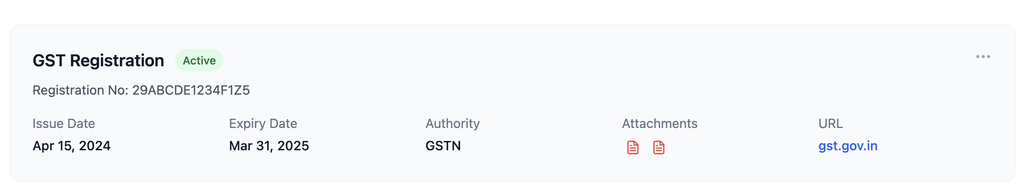 - PAN, GSTIN, DIN, ROC data