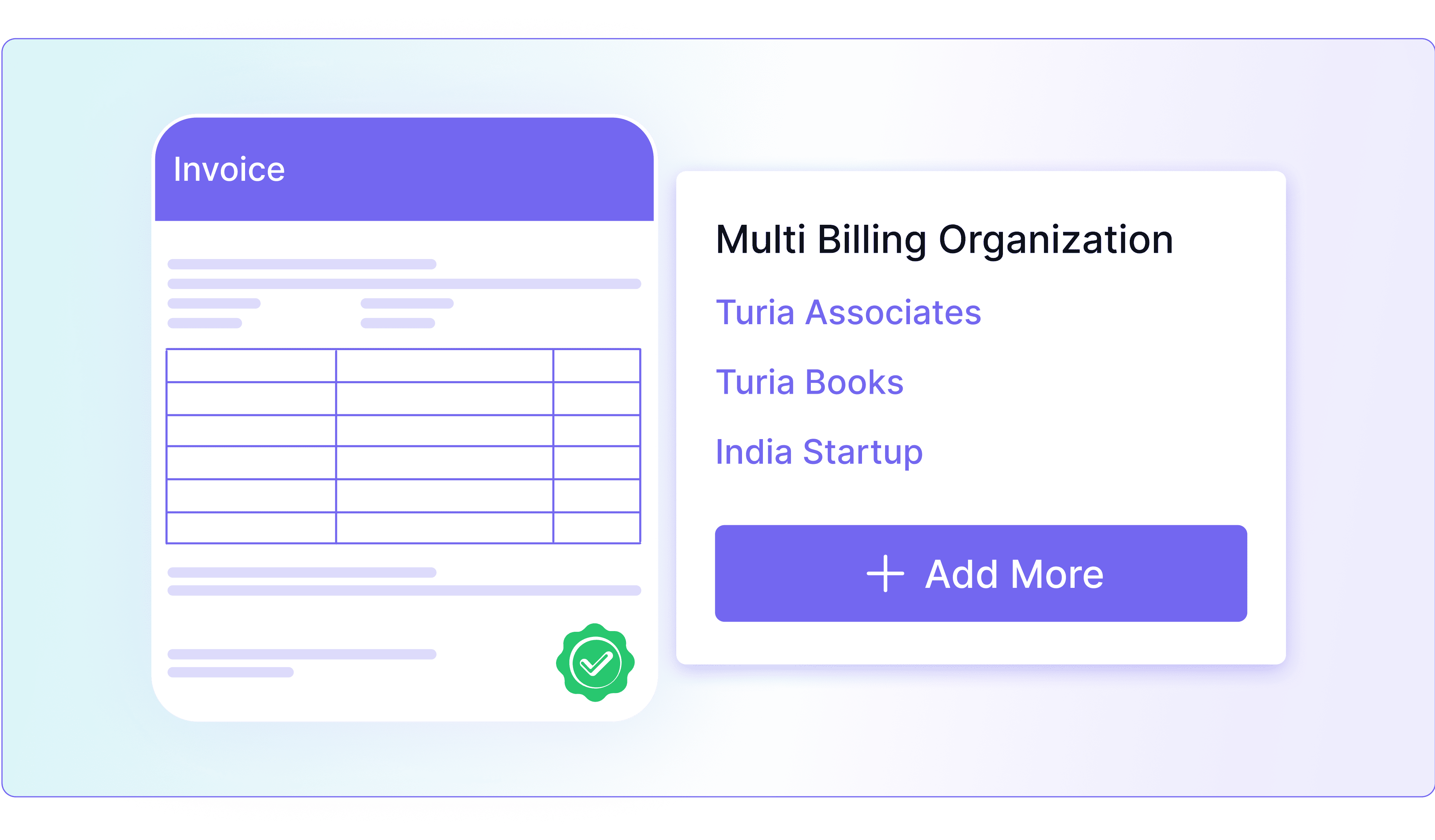 Multiple Billing Profiles- Create and manage multiple billing organizations (LLPs, partnerships, or subsidiaries) under one Turia account. Each with its own branding, GSTIN, and bank details.